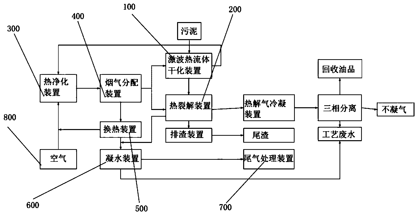 本發(fā)明提供一種激波污泥干化設(shè)備及污泥干化系統(tǒng),涉及污泥處理技術(shù)領(lǐng)域,該激波污泥干化設(shè)備,包括:激波熱流體干化裝置、熱凈化裝置、尾氣處理裝置以及與激波熱流體干化裝置