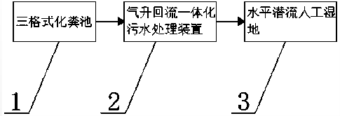 污水處理后的污泥用途 :本實(shí)用新型公開了一種新型低耗高效生活污水處理裝置,包括三格式化糞池、氣升回流一體化污水處理裝置和水平潛流人工濕地,所述氣升回流一體化污水處理